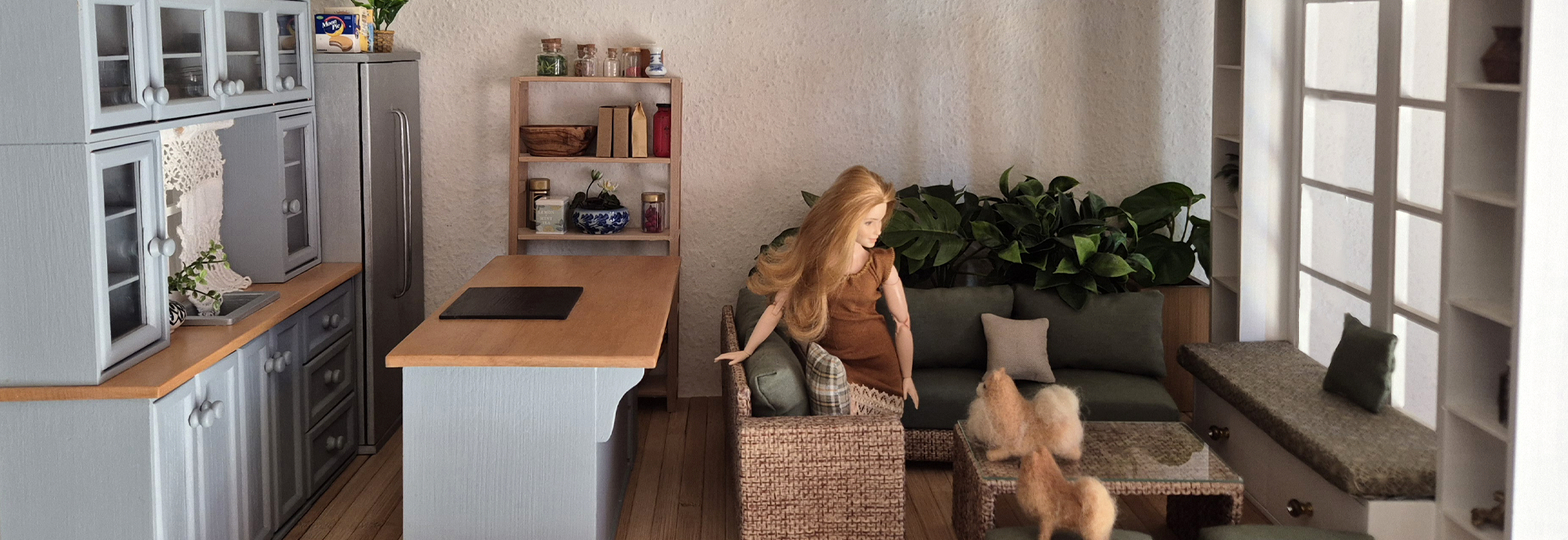 Just look at that. Really look at it. The ceiling height is generous and airy, the layout is spacious, the windows let in light from every angle, and the whole thing has an architectural coherence that actually makes sense for photographing dolls in their home. It's genuinely gorgeous. It looks like somewhere a 12-inch person would actually want to live.
