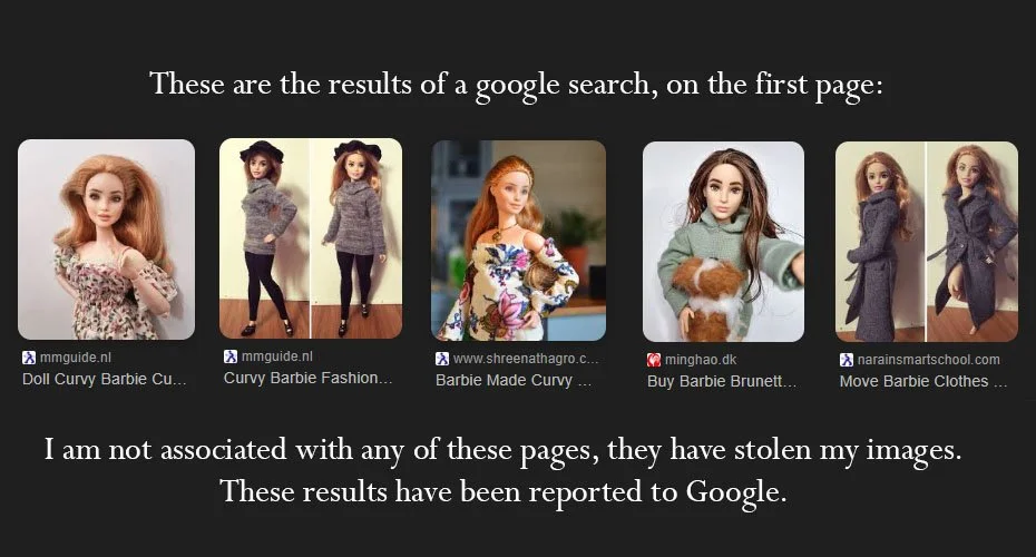 Getting angry at the person whose work was stolen is not logical or even in the realm of sanity. I’m doing my best, but all I can do is report the websites that use my photos without permission, submit takedown requests, and request removal from search results where I can. It is not a fast process. It is not a simple process. Documenting everything properly, filling out forms, submitting evidence, following up, and then waiting while Google processes the request and scam sites ignore takedown notices entirely — that takes time. I am one person, not a legal department, and not an internet cleanup crew who can vaporize every scam site the second it appears.